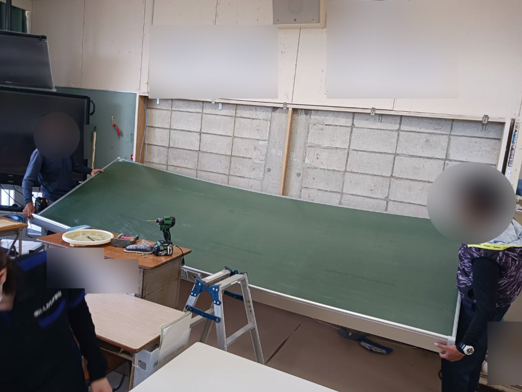 古い黒板の板面の取り換えをしてほしいとのご依頼を頂き、長年使用され続けた黒板の板面の張替えをさせていただく事になりました。