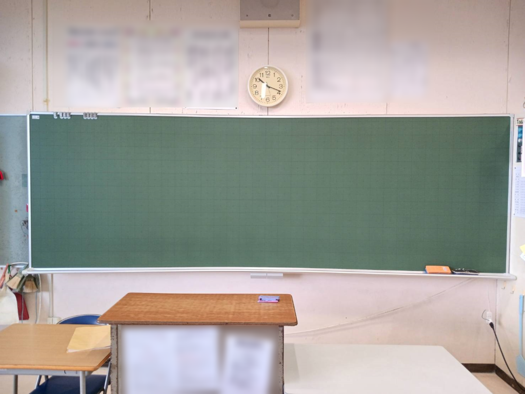曲面黒板を取り付けさせていただきました。曲面黒板は、光の反射を防ぎ、どの角度でも黒板が見えやすくなる工夫がなされています。生徒さんが、勉学に励むことが出来るように工夫し設計をされた黒板です。