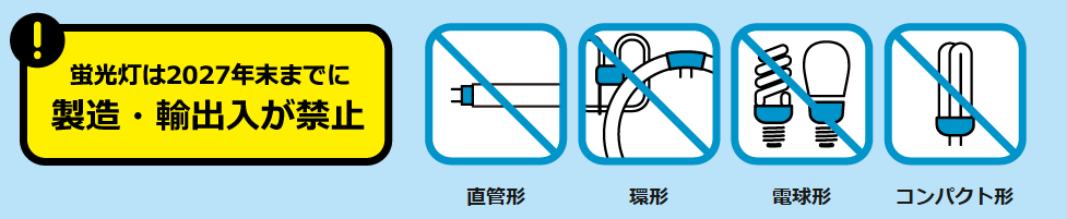 2027年末までに、一般照明用の蛍光灯の製造・輸出入が終了します