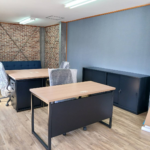 終了後は仕上げのタイルカーペットを市松模様に貼ります。