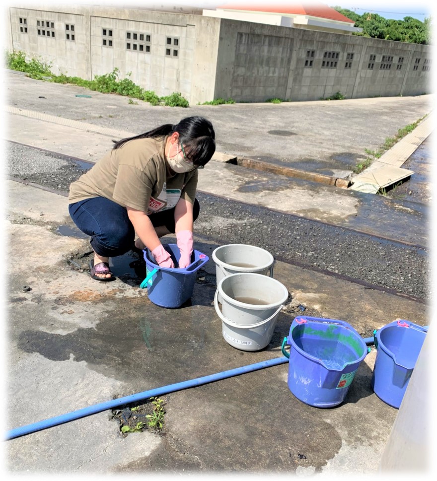 私は、皆の頑張った証である黒く汚れた雑巾をひたすら洗っていました🧼水汲みや雑巾を洗う体勢がなかなか腰に来ました…!😇