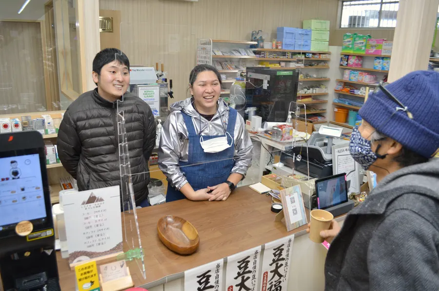 リニューアルした「ライフショップまつした」を切り盛りする松下洋平さん、シーナーンエーム・ウィモンさん夫妻(四万十町久保川)