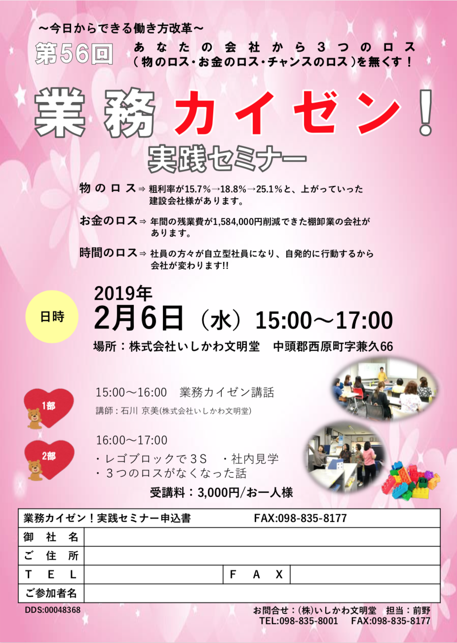 弊社にて「第56回 業務カイゼン実践セミナー」を開催いたします。