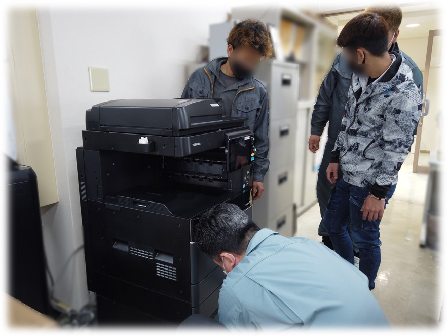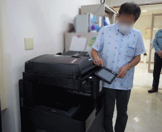 作業が一通り終わると、メーカー様がお客様へ前回の複合機と同じ点や違う点を実際の複合機を使い、丁寧に説明していました。前との違いって一番分かっておきたいですよね🧐