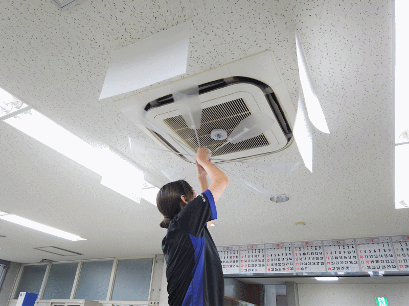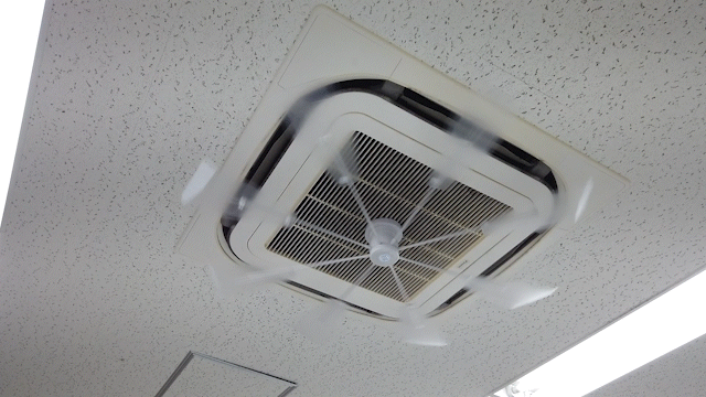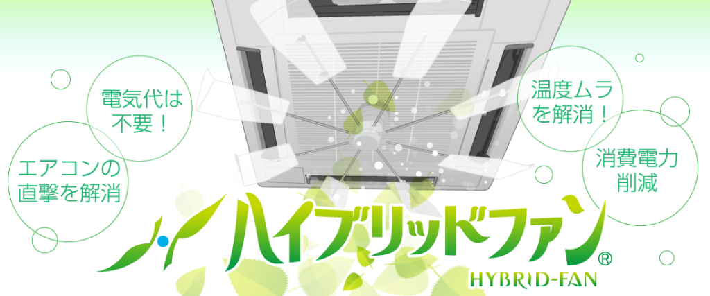 「エアコンの風向の関係で、冷風の当たる場所と当たらない場所があり、吹き出し口近くの天井に厚紙を貼りつけて風向きを調節していたが、見た目が悪く調節も難しかったため、改善ができるハイブリッドファンを購入したい」との事でした。