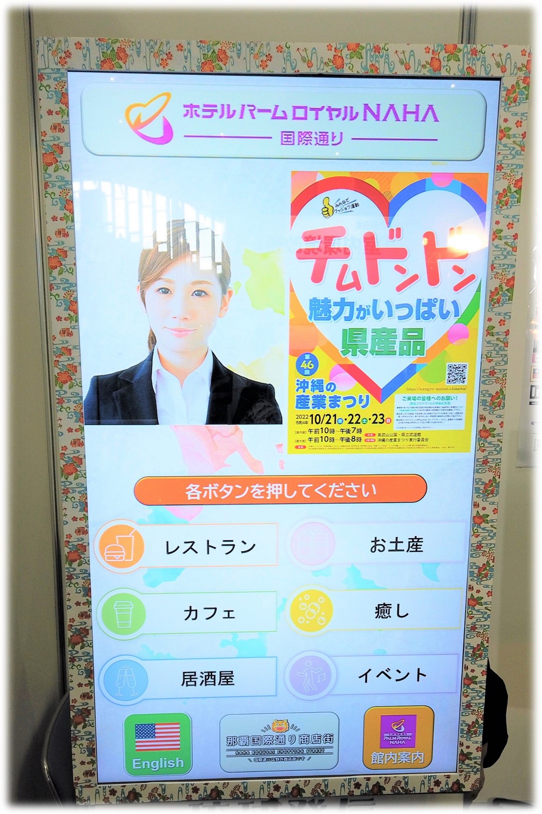琉球発信さんのブースでは、大きい画面に案内と人が映っています!最近ショッピングセンターなどでよく見るタッチパネル式の案内板ですね!ボタンに触れると女性が喋って音声でも案内をしてくれます👍
