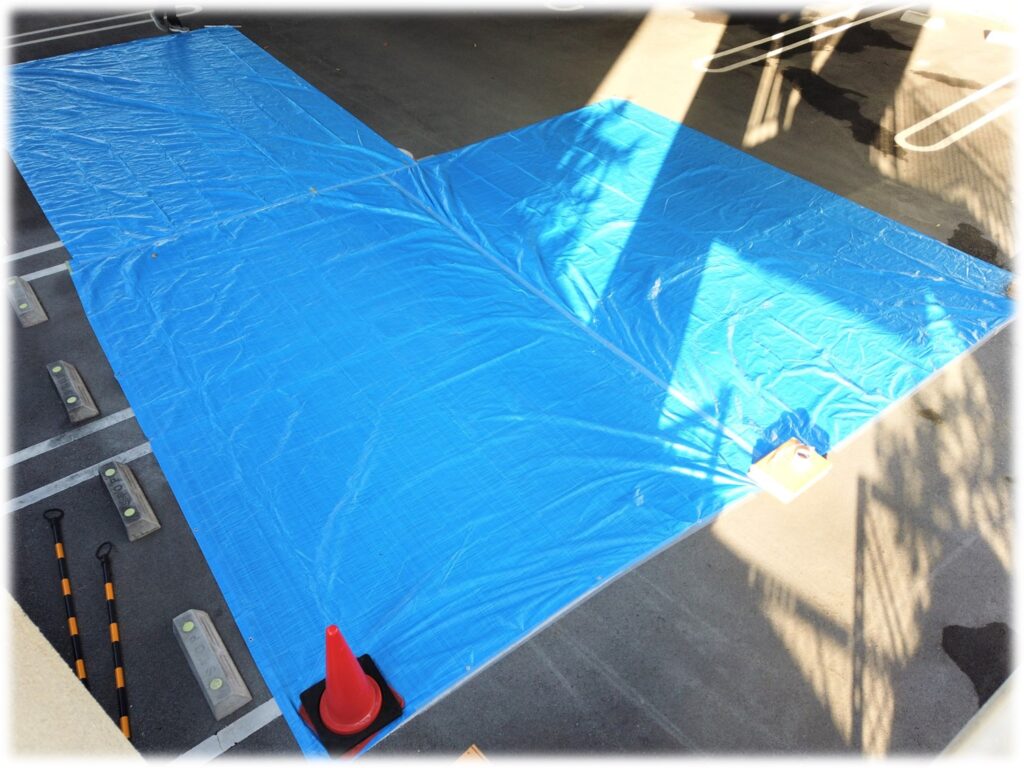 さて、納入するものはどこにあるんでしょう…?なにやらブルーシートがひかれていますね🧐