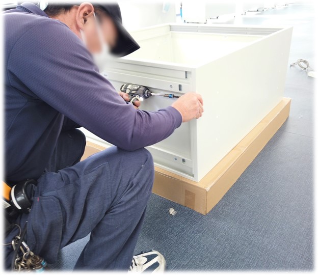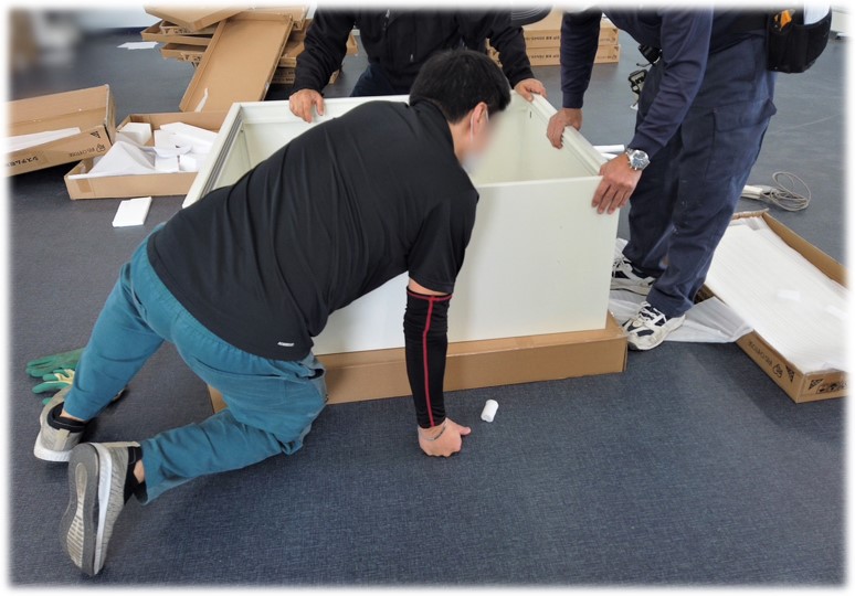 納入場所まで運んでいき、商品を組み立てています!黙々と組み立てていく様子がカッコいいですね✨