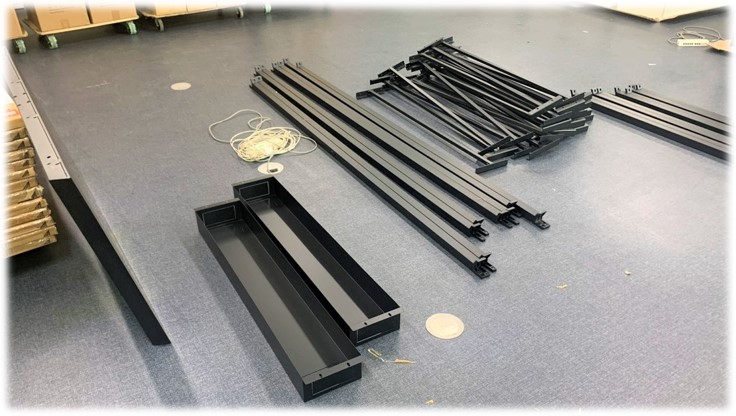 社員の皆様が座る、フリーアドレスデスクも組み立てていきます!💪
