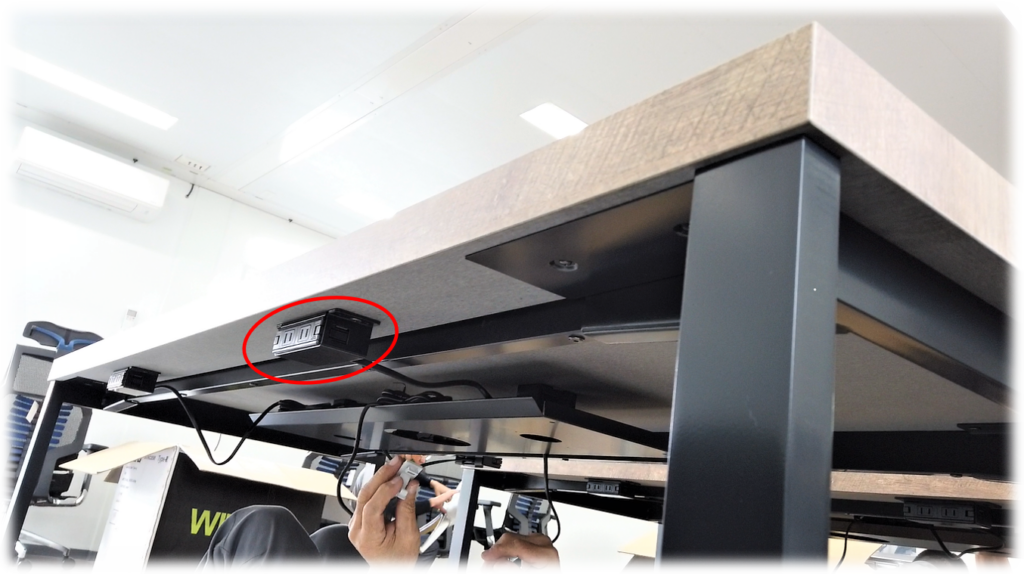 天板を固定して完成…と思いきや、忘れちゃいけないのがコンセント!天板の裏にコンセントが取り付けれられるようです🔌