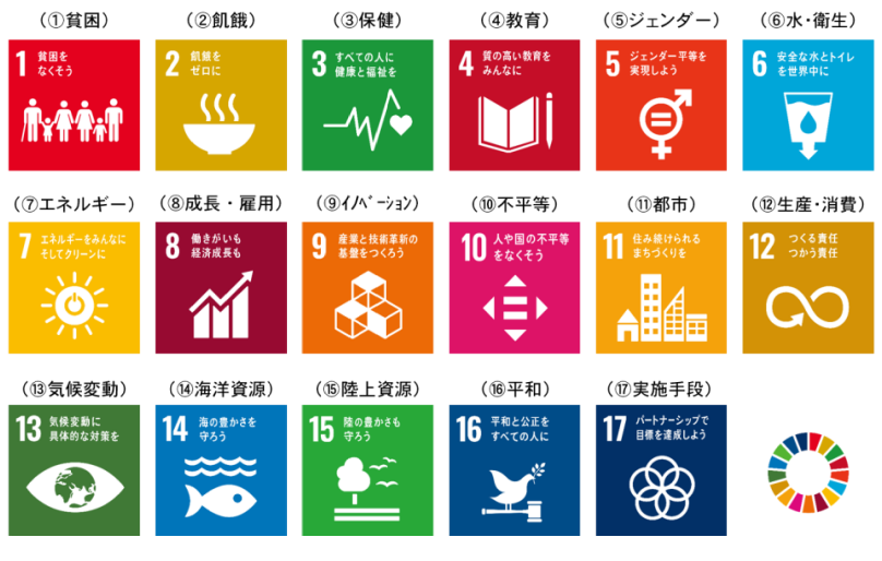 そもそも、SDGsとは、「誰一人取り残さない」持続可能で多様性と包摂性のある社会の実現のため、2030年を年限とする17の国際目標のことです。