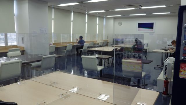 パーテーションですが、不透明なパーテーションでは狭苦しく、圧迫感があります。なによりも対面の顔が見えないのは一抹の不安感をつのらせますね。