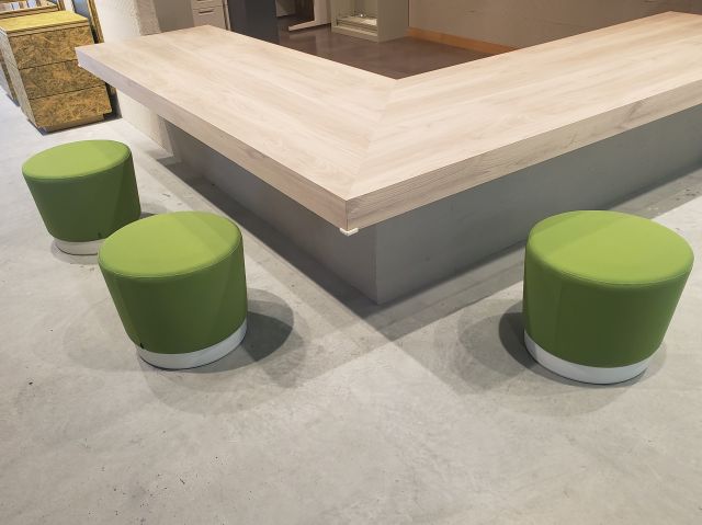 カウンター用の丸いす。ガチャピン色がPOPでかわいいです。