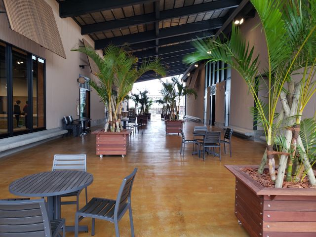 さわふじ広場にはデッキチェアとテーブルを設置しました