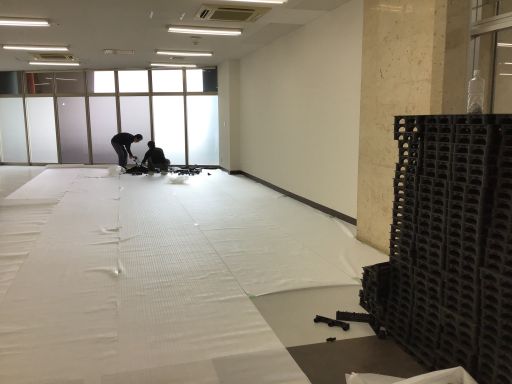 まずは養生シートを床一面に敷き込みます。これをすることにより原状復帰が格段にしやすくなります。