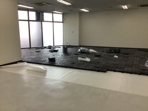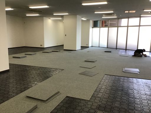 元はビニルタイル張りや長尺シートの床でした。こちらをOAオフィス空間に変身させます。