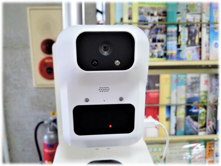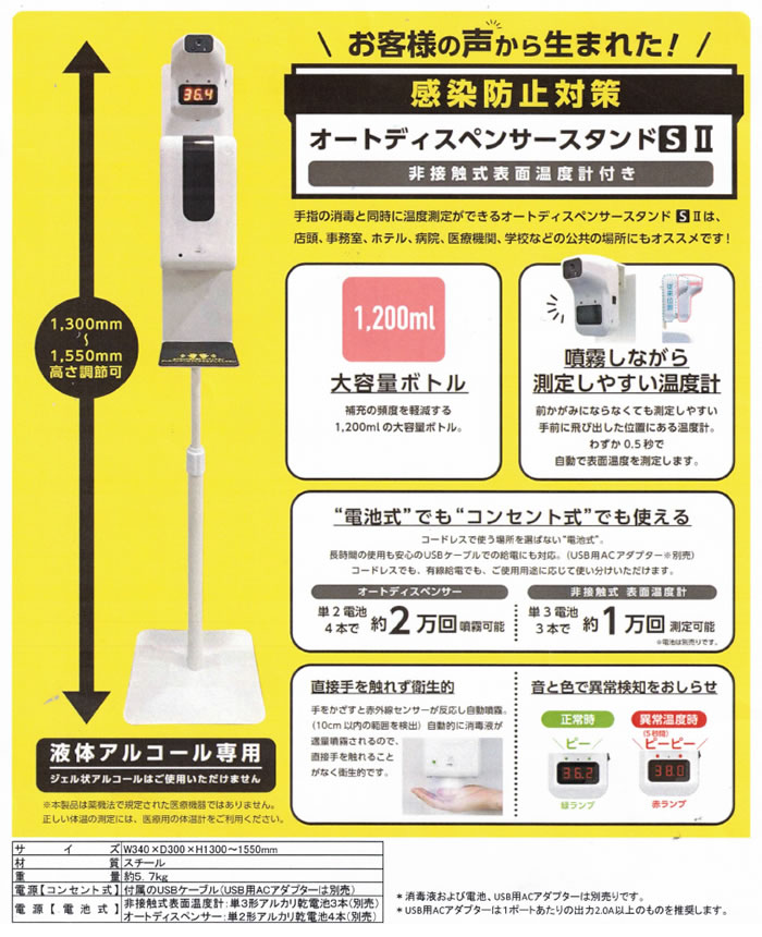 スタンド式で、非接触型検温器とディスペンサーが一体化になっています。