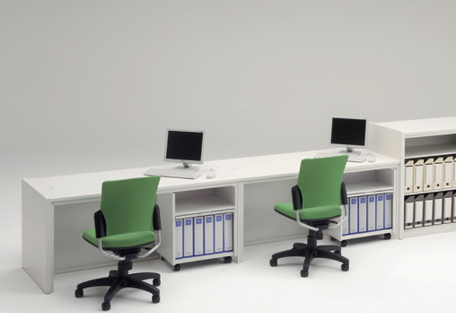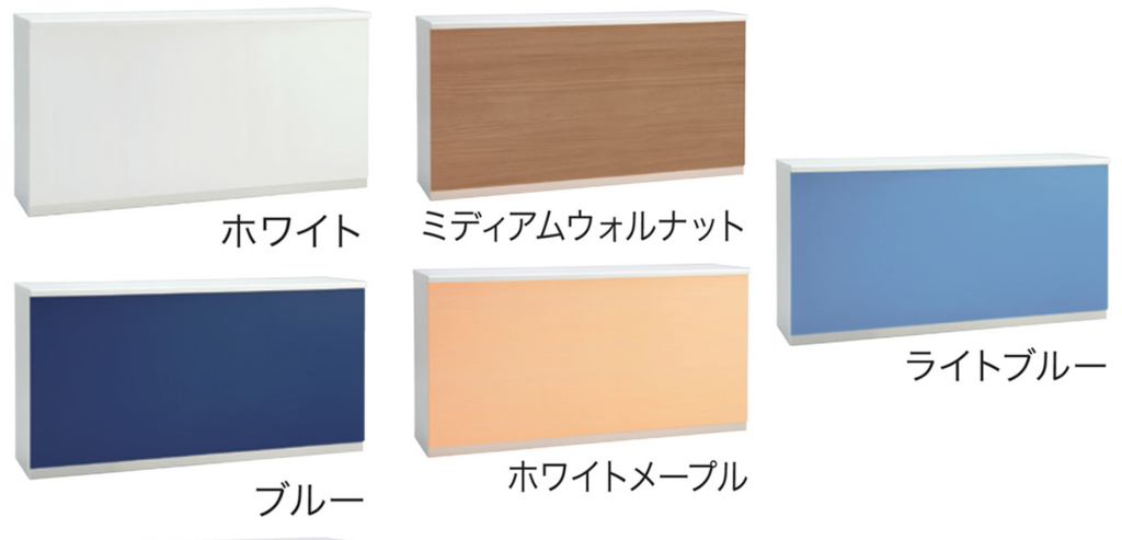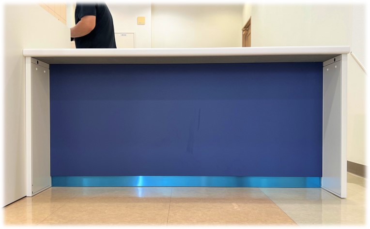 カウンター自体はシンプルですが、フロントパネルの色を5種類から選ぶことができ、空間や会社に合わせたカラーを演出できます。(今回はブルー)