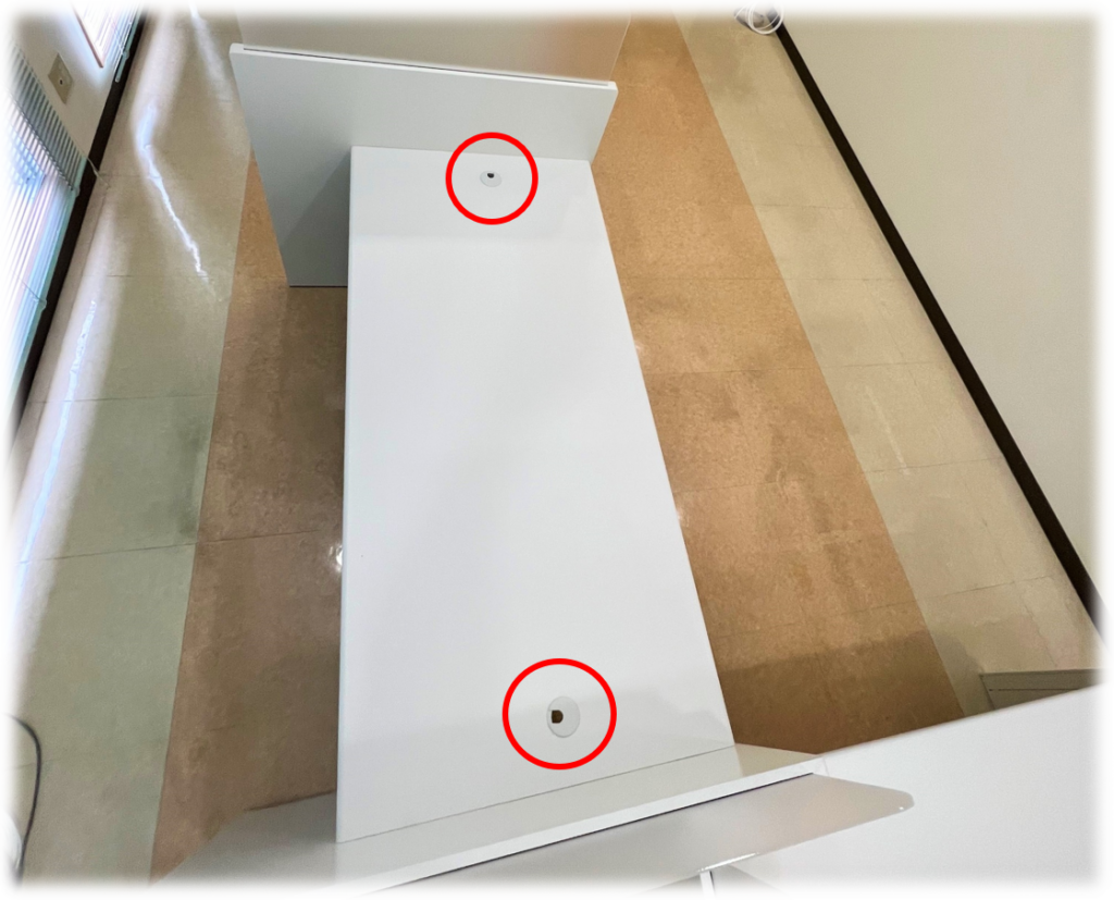 天板の両端に便利な配線口を設置しており、カウンターに電話やパソコンなどを設置する際などに便利です。