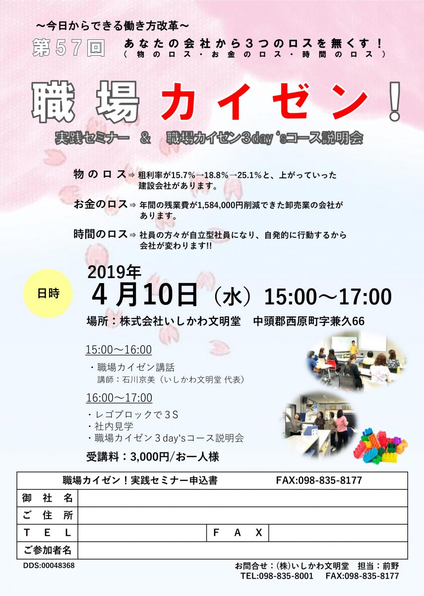 まずは4月10日に「第57回 職場カイゼン!実践セミナー」を開催しますので、
